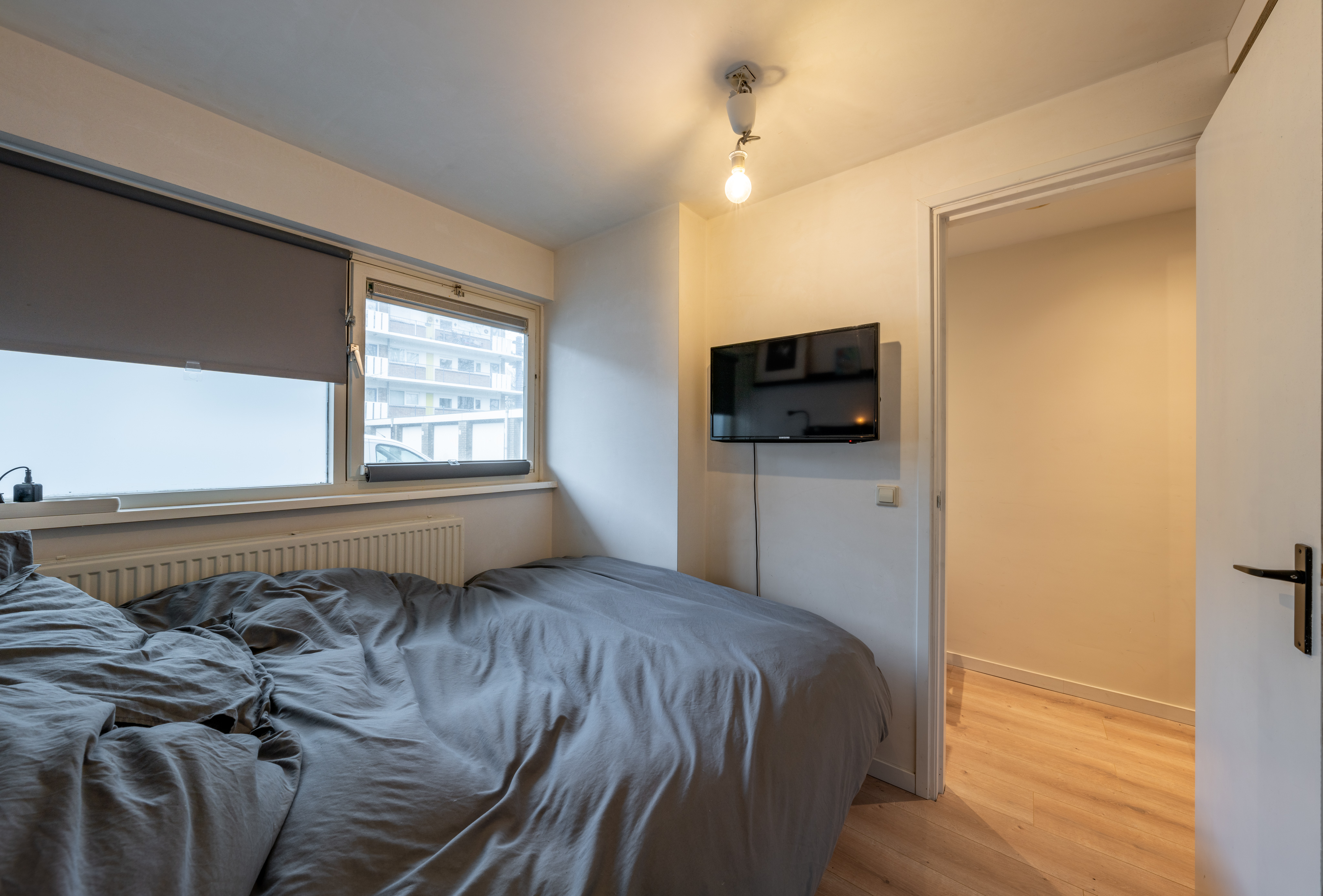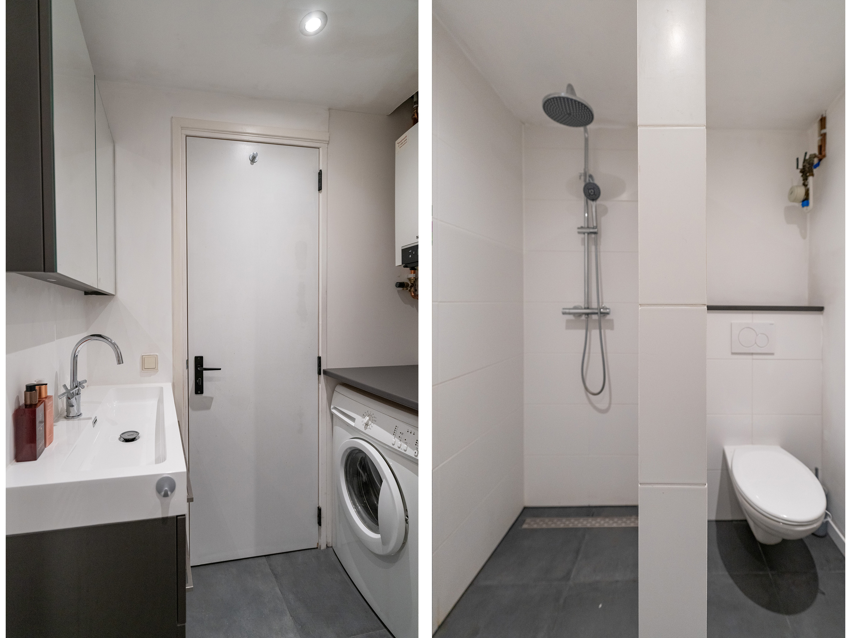 Vanuit de hal toegang tot 1 slaapkamer, badkamer voorzien met inbouwtoilet, inloopdouche, wastafelmeubel en wasmachine aansluiting.