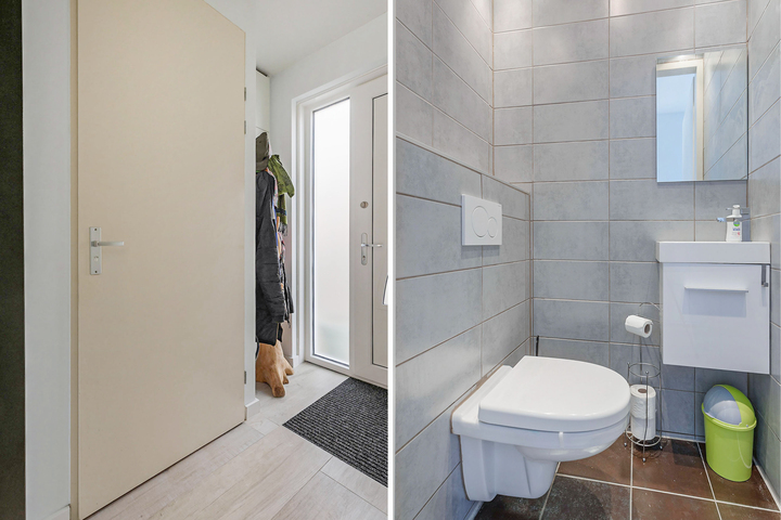 De woning bestaat uit vijf kamers waarvan vier slaapkamers en eventueel kan een 5e slaapkamer gemaakt worden. Op de begane grond een aparte toilet te vinden in de woning, daarnaast zijn er twee badkamers waarvan 1 op de eerste verdieping met bad, douche wastafel en toilet en de 2e verdieping alleen douche, wastafel, toilet en wasmachine.